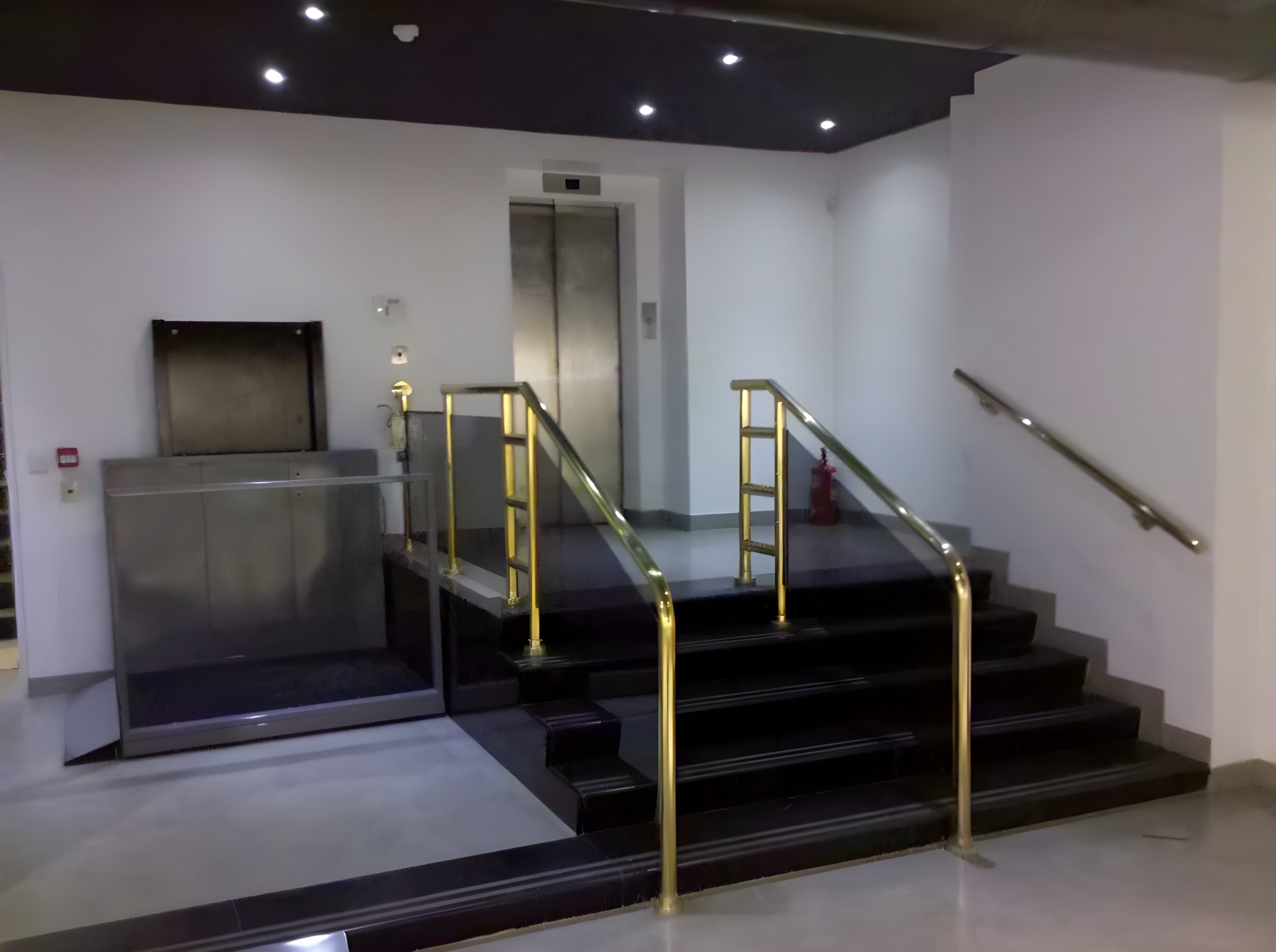 Mas info.Son pequeños elevadores hidraulicos que se instalan junto a escaleras para permitir el acceso a personas con discapacidad.